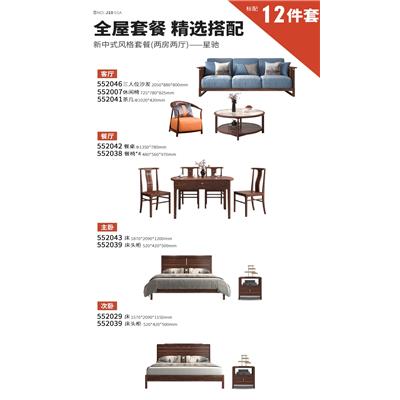 全屋家具套餐-乌金木新中式552系列套餐-两房两厅-星彩